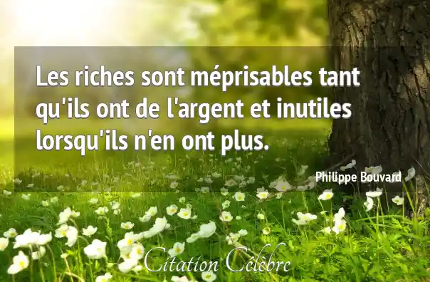 Les riches sont méprisables tant qu'ils ont de l'argent et inutiles lorsqu'ils n'en ont plus.