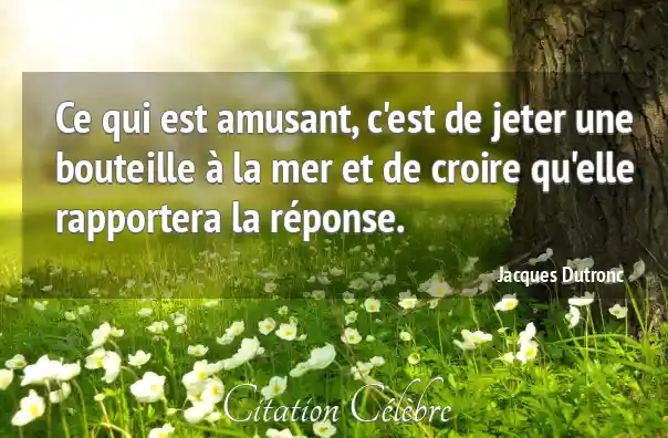 Ce qui est amusant, c'est de jeter une bouteille à la mer et de croire qu'elle rapportera la réponse.