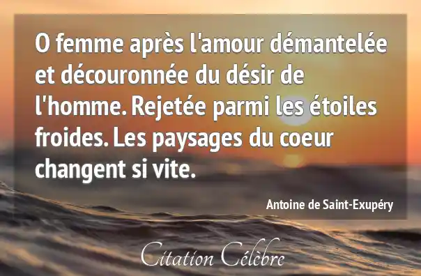 O femme après l'amour démantelée et découronnée du désir de l'homme. Rejetée parmi les étoiles froides. Les paysages du coeur changent si vite.