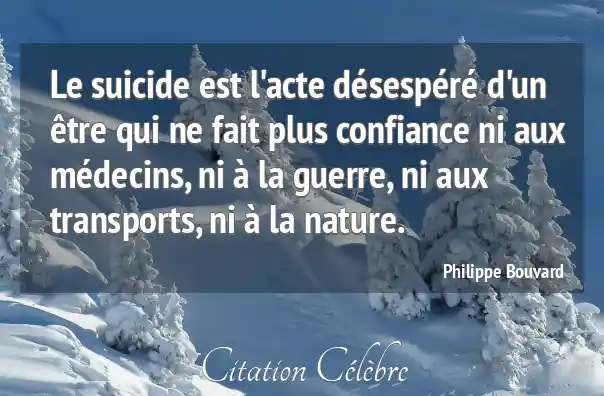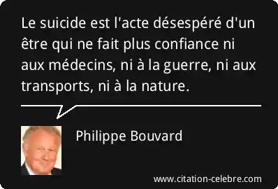 Le suicide est l'acte désespéré d'un être qui ne fait plus confiance ni aux médecins, ni à la guerre, ni aux transports, ni à la nature.
