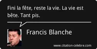 Fini la fête, reste la vie. La vie est bête. Tant pis.