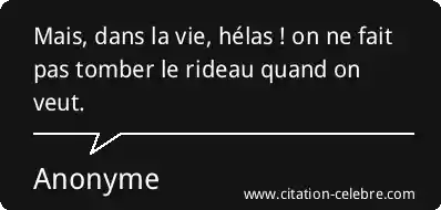 Mais, dans la vie, hélas ! on ne fait pas tomber le rideau quand on veut.