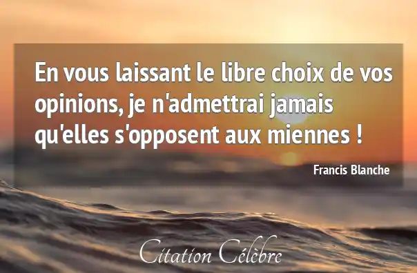 En vous laissant le libre choix de vos opinions, je n'admettrai jamais qu'elles s'opposent aux miennes !