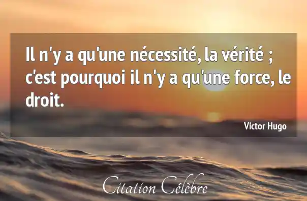Il n'y a qu'une nécessité, la vérité ; c'est pourquoi il n'y a qu'une force, le droit.
