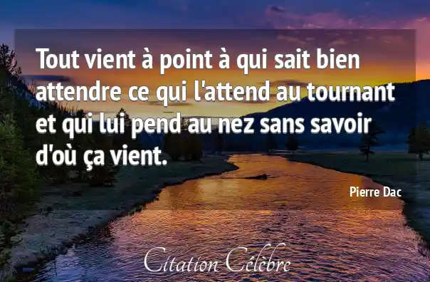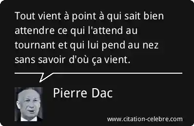 Tout vient à point à qui sait bien attendre ce qui l'attend au tournant et qui lui pend au nez sans savoir d'où ça vient.