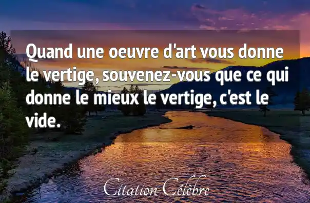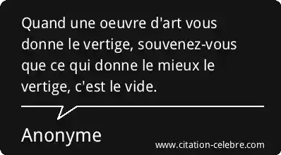 Quand une oeuvre d'art vous donne le vertige, souvenez-vous que ce qui donne le mieux le vertige, c'est le vide.