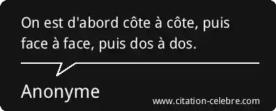 On est d'abord côte à côte, puis face à face, puis dos à dos.