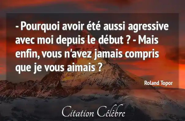 - Pourquoi avoir été aussi agressive avec moi depuis le début ? - Mais enfin, vous n'avez jamais compris que je vous aimais ?