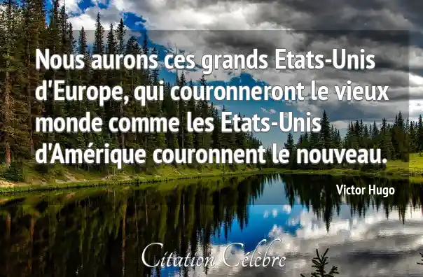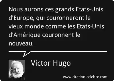 Nous aurons ces grands Etats-Unis d'Europe, qui couronneront le vieux monde comme les Etats-Unis d'Amérique couronnent le nouveau.
