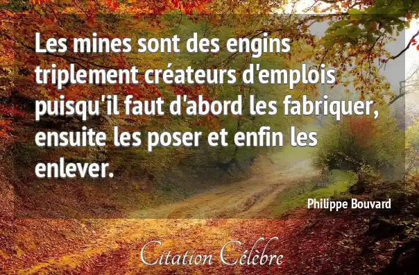 Les mines sont des engins triplement créateurs d'emplois puisqu'il faut d'abord les fabriquer, ensuite les poser et enfin les enlever.