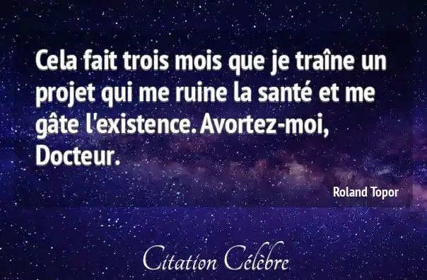 Cela fait trois mois que je traîne un projet qui me ruine la santé et me gâte l'existence. Avortez-moi, Docteur.