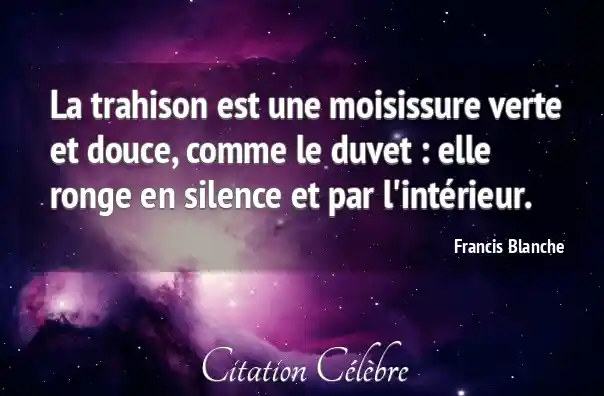 La trahison est une moisissure verte et douce, comme le duvet : elle ronge en silence et par l'intérieur.