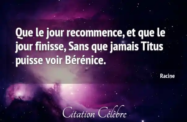 Que le jour recommence, et que le jour finisse, Sans que jamais Titus puisse voir Bérénice.