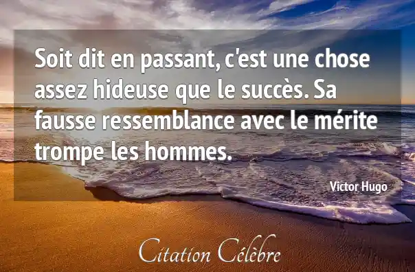 Soit dit en passant, c'est une chose assez hideuse que le succès. Sa fausse ressemblance avec le mérite trompe les hommes.