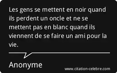 Les gens se mettent en noir quand ils perdent un oncle et ne se mettent pas en blanc quand ils viennent de se faire un ami pour la vie.