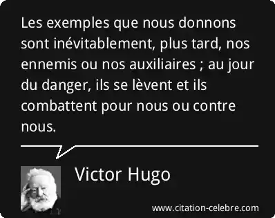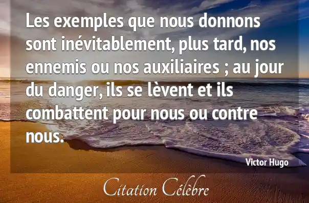 Les exemples que nous donnons sont inévitablement, plus tard, nos ennemis ou nos auxiliaires ; au jour du danger, ils se lèvent et ils combattent pour nous ou contre nous.