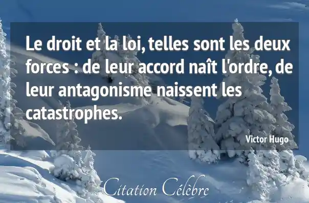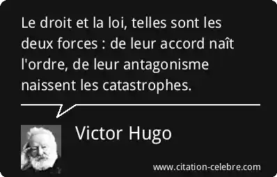 Le droit et la loi, telles sont les deux forces : de leur accord naît l'ordre, de leur antagonisme naissent les catastrophes.