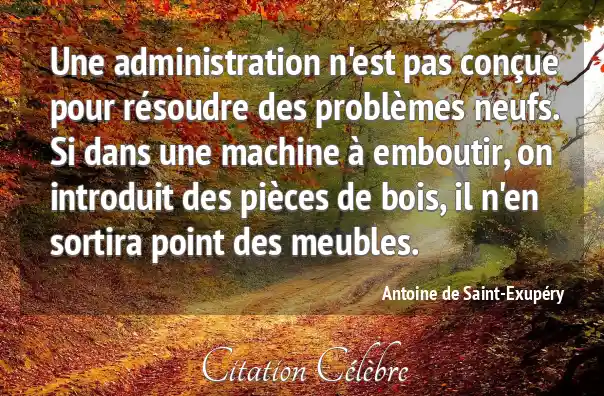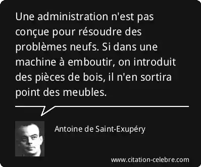 Une administration n'est pas conçue pour résoudre des problèmes neufs. Si dans une machine à emboutir, on introduit des pièces de bois, il n'en sortira point des meubles.