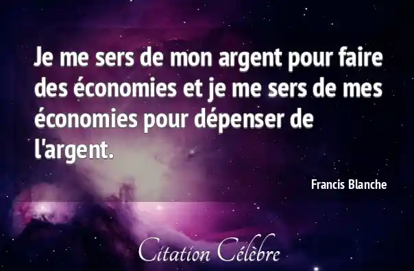 Je me sers de mon argent pour faire des économies et je me sers de mes économies pour dépenser de l'argent.