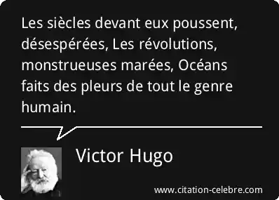 Les siècles devant eux poussent, désespérées, Les révolutions, monstrueuses marées, Océans faits des pleurs de tout le genre humain.