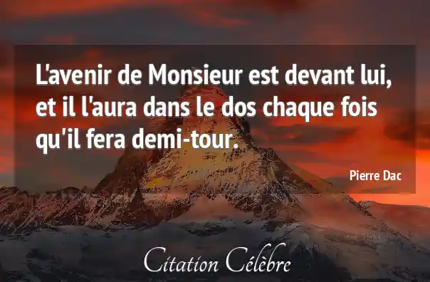 L'avenir de Monsieur est devant lui, et il l'aura dans le dos chaque fois qu'il fera demi-tour.