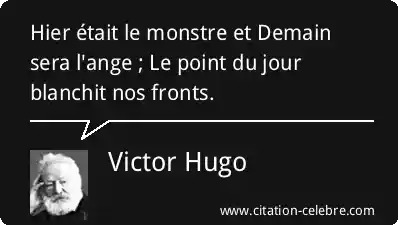 Hier était le monstre et Demain sera l'ange ; Le point du jour blanchit nos fronts.
