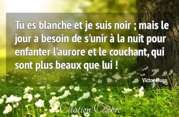 Tu es blanche et je suis noir ; mais le jour a besoin de s'unir à la nuit pour enfanter l'aurore et le couchant, qui sont plus beaux que lui !