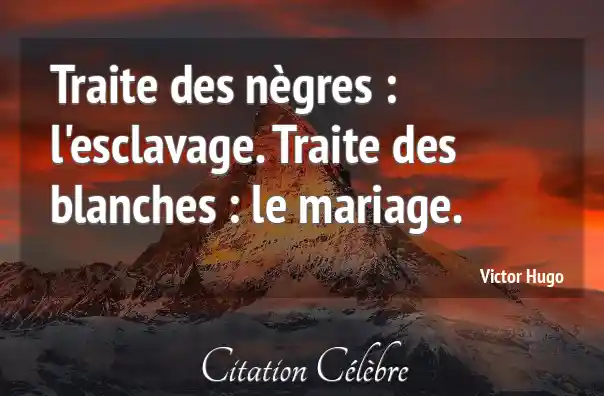 Traite des nègres : l'esclavage. Traite des blanches : le mariage.
