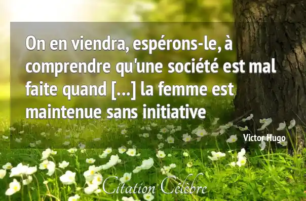 On en viendra, espérons-le, à comprendre qu'une société est mal faite quand [...] la femme est maintenue sans initiative