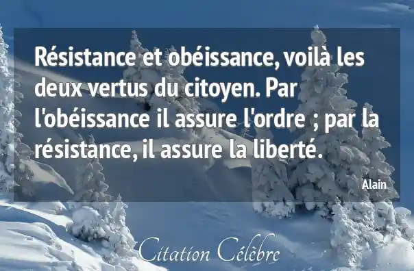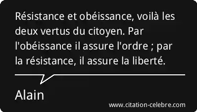 Résistance et obéissance, voilà les deux vertus du citoyen. Par l'obéissance il assure l'ordre ; par la résistance, il assure la liberté.