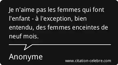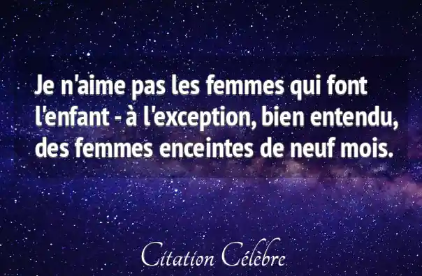 Je n'aime pas les femmes qui font l'enfant - à l'exception, bien entendu, des femmes enceintes de neuf mois.