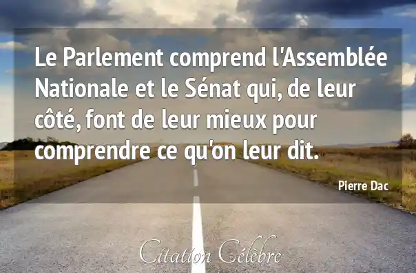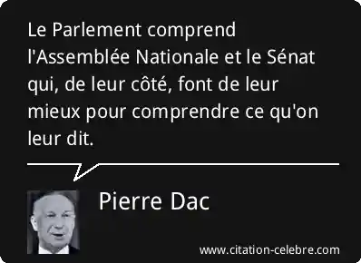Le Parlement comprend l'Assemblée Nationale et le Sénat qui, de leur côté, font de leur mieux pour comprendre ce qu'on leur dit.