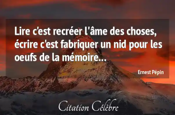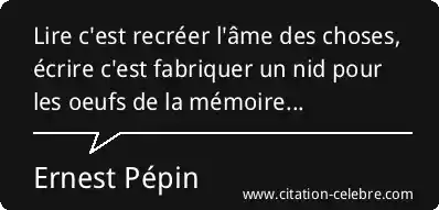 Lire c'est recréer l'âme des choses, écrire c'est fabriquer un nid pour les oeufs de la mémoire...
