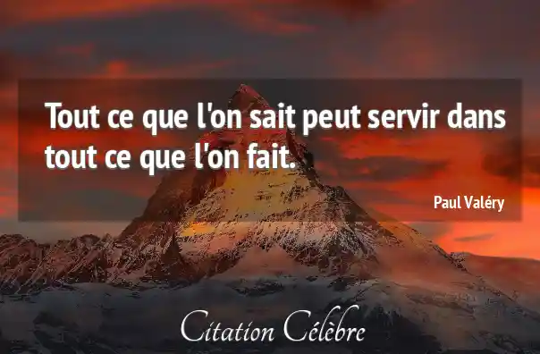 Citation Paul Valéry sait : Tout ce que l'on sait peut servir dans tout ce...