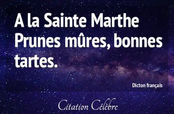 A la Sainte Marthe Prunes mûres, bonnes tartes.