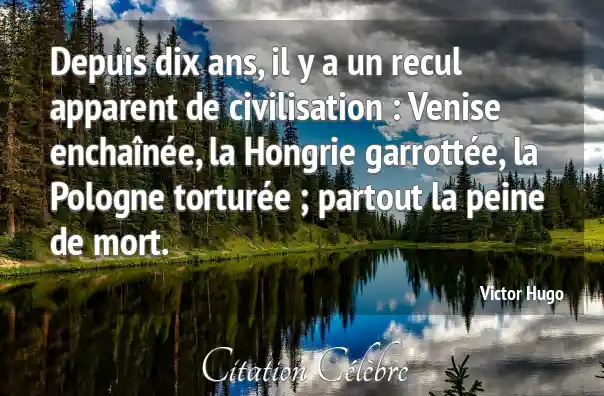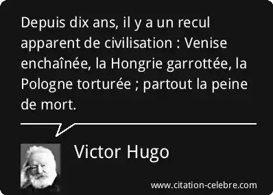 Depuis dix ans, il y a un recul apparent de civilisation : Venise enchaînée, la Hongrie garrottée, la Pologne torturée ; partout la peine de mort.