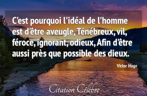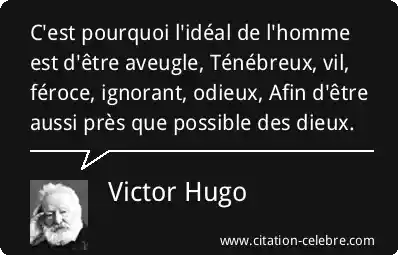 C'est pourquoi l'idéal de l'homme est d'être aveugle, Ténébreux, vil, féroce, ignorant, odieux, Afin d'être aussi près que possible des dieux.