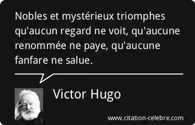 Nobles et mystérieux triomphes qu'aucun regard ne voit, qu'aucune renommée ne paye, qu'aucune fanfare ne salue.