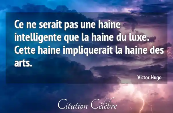 Ce ne serait pas une haine intelligente que la haine du luxe. Cette haine impliquerait la haine des arts.