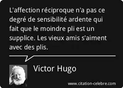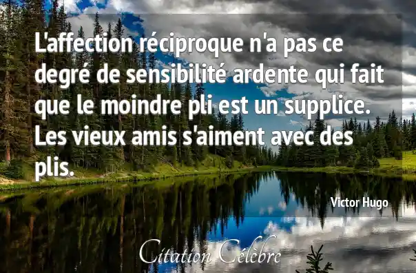 L'affection réciproque n'a pas ce degré de sensibilité ardente qui fait que le moindre pli est un supplice. Les vieux amis s'aiment avec des plis.