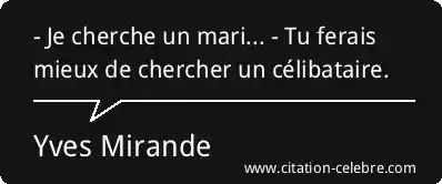 - Je cherche un mari... - Tu ferais mieux de chercher un célibataire.