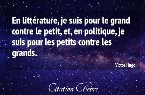 En littérature, je suis pour le grand contre le petit, et, en politique, je suis pour les petits contre les grands.