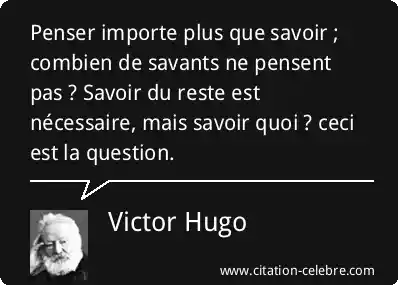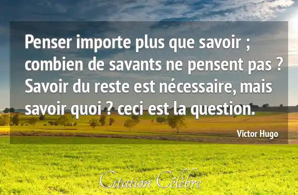 Penser importe plus que savoir ; combien de savants ne pensent pas ? Savoir du reste est nécessaire, mais savoir quoi ? ceci est la question.