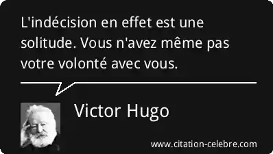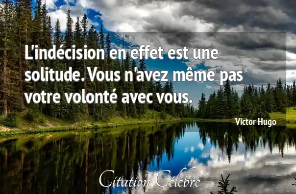 L'indécision en effet est une solitude. Vous n'avez même pas votre volonté avec vous.