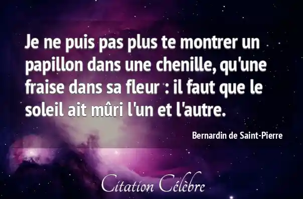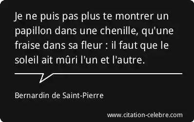 Je ne puis pas plus te montrer un papillon dans une chenille, qu'une fraise dans sa fleur : il faut que le soleil ait mûri l'un et l'autre.