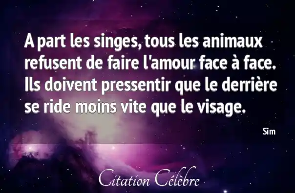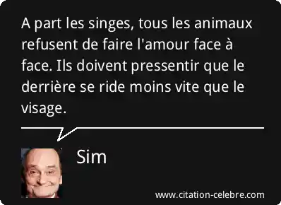 A part les singes, tous les animaux refusent de faire l'amour face à face. Ils doivent pressentir que le derrière se ride moins vite que le visage.