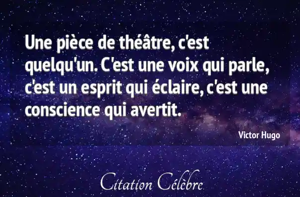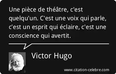 Une pièce de théâtre, c'est quelqu'un. C'est une voix qui parle, c'est un esprit qui éclaire, c'est une conscience qui avertit.