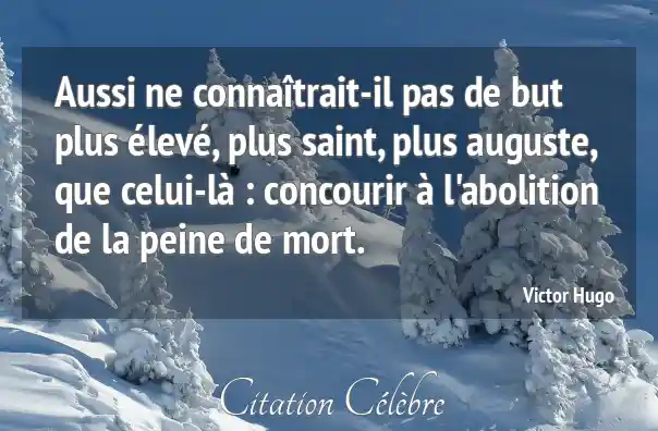 Aussi ne connaîtrait-il pas de but plus élevé, plus saint, plus auguste, que celui-là : concourir à l'abolition de la peine de mort.
