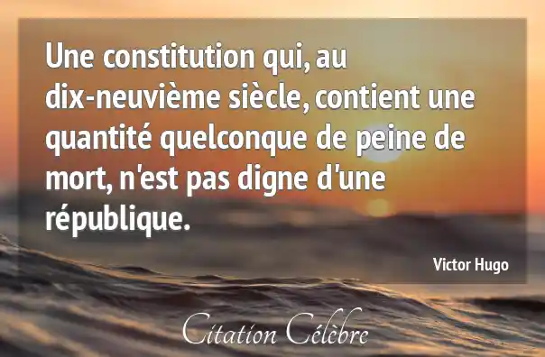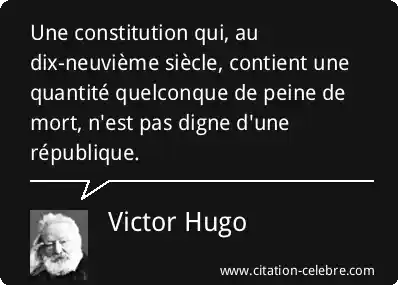 Une constitution qui, au dix-neuvième siècle, contient une quantité quelconque de peine de mort, n'est pas digne d'une république.