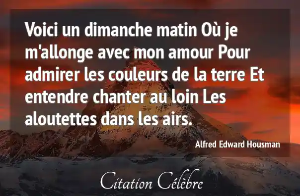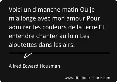 Voici un dimanche matin Où je m'allonge avec mon amour Pour admirer les couleurs de la terre Et entendre chanter au loin Les aloutettes dans les airs.